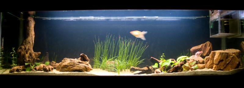 Στην θεση σου και στον περιορισμο των 90 λιτρων, θα εκανα στησιμο "πυραμιδας". Δηλαδη θα εβαζα τις πετρες πρωτα κοντα στα 1/4-3/4 και θα εμπλεκα πανω τους τα ξυλα. Ας εφταναν τα κλαδια μεχρι την επιφανεια..με λιγη moss πανω-πανω και ανουμπιες μεσα στο συμπλεγμα θα εδειξνε πιστευω τελειο. Πισω απο αυτη τη πυραμιδα θα αφηνα χωρο και θα εβαζα μια κουρτινα απο βαλισνεριες, ή καποιο αλλο ψηλο φυτο οπως πχ μια Nymphaea rubra. Δεξια κι αριστερα μικροσωμα ευκολα επισης φυτα και μπροστα ενα ευκολο γρασιδι. Νομιζω οτι το αποτελεσμα αυτο θα ηταν πολυ φυσικο και εντυπωσιακο ταυτοχρονα. Ασχετα ομως απο το τι λεμε εμεις, τον τελικο λογο τον εχεις εσυ, σε συνδυασμο με το τι θες να κανεις και τι ζωντανα θα φιλοξενησει το ενυδρειο ;) |