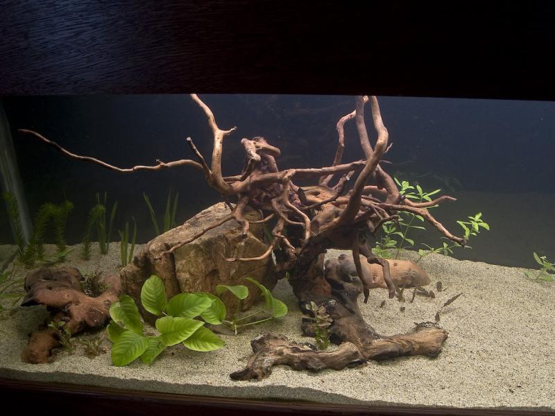 Συμφωνώ και εγώ με τον διαχωρισμό. Πίσω δεξιά μπορούν να μπούν βαλισνέριες, στη ρίζα να δεθεί και κανά μικροσόρουμ και χαμηλά στο χαλικι γύρω από τη ρίζα, μικρά φυτά τύπου ελεόχαρις παρβούλα, ή εχινόδωροι τενέλους.
