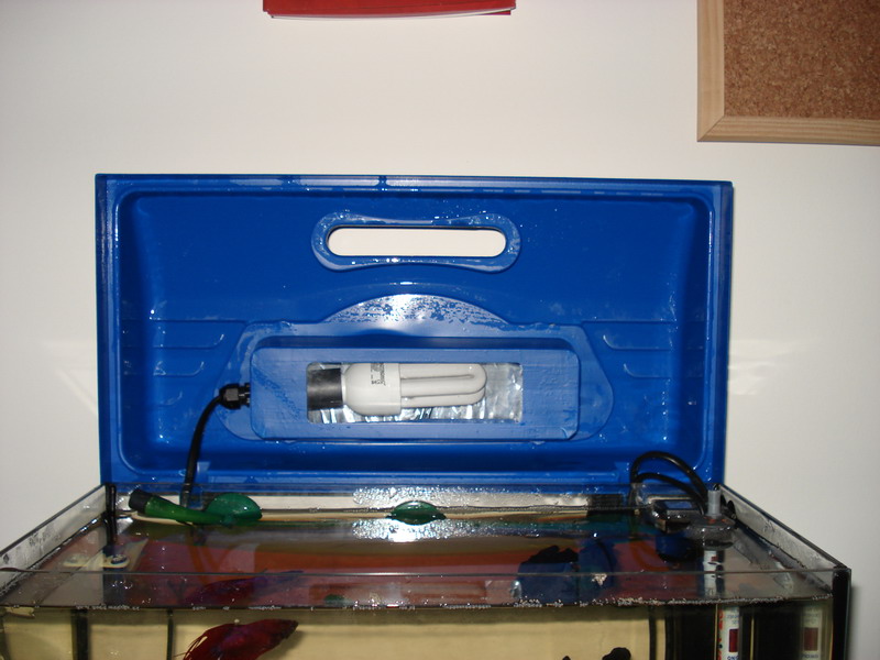 παιδιά στο ενυδρειο με τον μονομάχο μου έχω πρόβλημα με τον φωτισμό και θα ήθελα να με βοηθήσετε να βρω καμιά πατέντα για το καπάκι για να μπορέσει να μπει μια σωστή λάμπα στέλνω και φώτο από το καπάκι.37*17cm τι μπορώ να κάνω?αυτήν την στιγμή έχω μια οικονομίας 11w ( ανεπαρκείς) γιατί οι κοινές λάμπες καίνε το πλαστικό