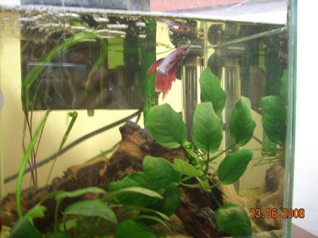 Επιτέλους τα κατάφερα κι εγώ να πάρω έναν και όμορφο μάλιστα. Λοιπόν το ψάρι ονομάζεται Πέτρος όπως όλα τα αρσενικά κατοικίδια μου και βρίσκεται σε ένα 15λιτρο ενυδρείο (Τον κύβο του Nik25 τον οποί και ευχαριστώ δημόσια για την άψογη συνεργασία). Μέσα υπάρχει μία ρίζα με μία Anubia var. Nana δεμένη και μία πέτρα λευκή με μία ακόμη Anubia var. Nana και μία ρίζα Valisneria που δεν θυμάμαι κι εγώ πία είναι. Ο ψαρής είναι μέσα απο το Σάββατο το πρωί. Είναι λίγο ντροπαλός, Κατά τα άλλα είναι αρκετά ζωηρός και τρέφεται κανονικά. Είναι το 3 ενυδρείο που έχω στον χώρο της δουλειάς, να δούμε πού θα φτάσω σε λίγο δεν θα υπάρχει καθόλου διαθέσιμος χώρος!!!!! Κάθε σχόλιο ευπρόσδεκτο. |