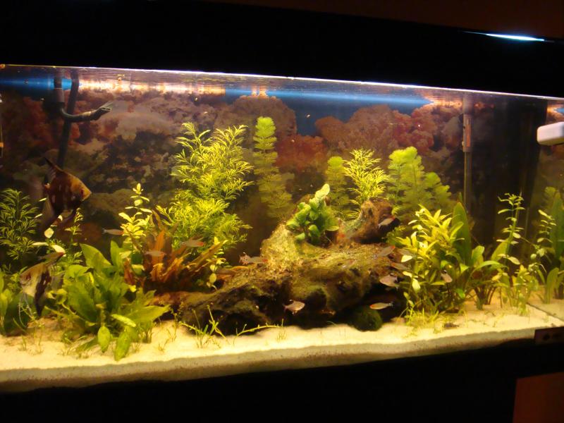 Χρησιμοποιηθηκε υποστρωμα της Sera Froredepot και απο πανω χαλαζιακη αμμος. Ο εξοπλισμος που μαλλον θα χρειαστει αλλαγμα σιγα σιγα ειναι θερμοστατης της SCUBA 300 SICCE, εσωτερικο φιλτρο κινεζικο και εξωτερικο φιλτρο CRISTALPROFI 250. Λεω να βαλω θερμοστατη της Jagger 300 και εξωτερικο φιλτρο της EHEIM. Για το φιλτρο ποιο λετε να παρω; Απο λαμπες χρησιμοποιω 2 aqua light 39w 6500k και 2 qsram 39w με απαλο ροζ χρωμα. |