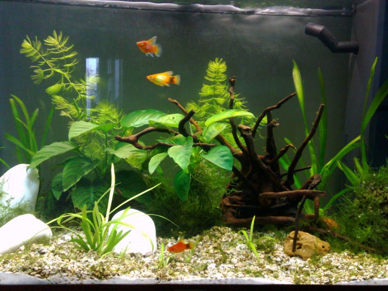 Διαστάσεις:81x50x36 Όγκος:125lt (περίπου 100 καθαρά) Φυτά:-java moss -anumbia -vallisneria -sagittaria Ψάρια / ¶λλα είδη: 5 platy - 2 red cherry Φωτισμός: 2x28 w Διάρκεια φωτισμού: 9 ώρες Φιλτράρισμα:Juwel filter bio flow 3.0 (με προσθήκη siporax) Θερμοστάτης:100w Λίπανση: seachem flourish Παροχή CO2:- Παράμετροι: pH:8 Γενική σκληρότητα (GH):- Ανθρακική σκληρότητα (ΚΗ):- Αμμωνία (ΝΗ3):0 Νιτρώδη (ΝΟ2):0 Νιτρικά (ΝΟ3):10 Αλλαγές νερού:15% εβδομαδιαία Θερμοκρασία:24 ¶λλες πληροφορίες:το ενυδρείο λειτουργεί σχεδόν 20 μέρες(κατα το στήσιμό του μετεφερα όλα τα υλικά και μέρος του νερου απο παλαιότερο ενυδρείο,4 ετών ζωής). Δουλεύω και το παλιό φιλτρο για λίγες ακόμα μέρες *Περιμένω σχόλιά σας. Ευχαριστώ |