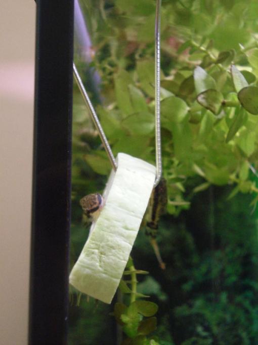 Σιγά σιγά οι otos άρχιζαν να συνηθίζουν την νέα τους τροφή και πλέον του δίνουν και καταλαβαίνει. Μένουν κολλημένοι πάνω στο λαχανίκο λες και φοβούνται μην το χάσουν. Βέβαια έχουν λίγο συναγωνισμό από τα δύο SAE αλλά η τροφή φτάνει για όλους.