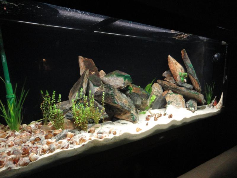 οι πετρες εχουν αρχισει να πιανουν μια πρασινη αλγη και η χαρα μου ειναι απεριγραπτη. νομιζω παμε καλα. Αναμενω και 11 cyprichromis leptosoma mpulungu σε λιγες μερες να γεμισουν το ενυδρειο. τα φυτα ομως δε μου πανε και πολυ καλα. Η φτερη στο κεντρο παει σφαιρα! Η ανουμπια η αριστερη εχει ****** φυλλα και βλεπω βγαζει καινουρια φυλλα. Η δεξια εχει σκληρα φυλλα και ειναι στασιμη εντελως. Οι δυο βαλισνεριες ηταν ψιλοψοφιες απο οταν τις πηρα αλλα σιγα σιγα εχω την εντυπωση μεγαλωνουν. οι bacopes ομως ολο και μαραινονται. Εχω στεναχωρηθει γιατι κανει πολυ καλη δουλεια να διαχωριζει το χωρο των similis. υπαρχει κατι που μπορω να κανω για να τονωσω τα φυτα ? |