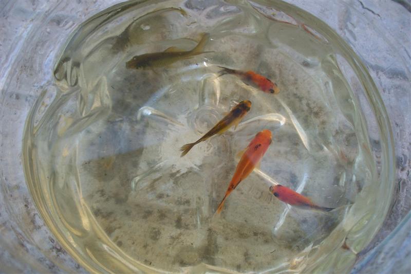 ανεβασα μερικες φωτο απο μερικα μικρα που επιασα , τι μικρα δηλαδη εχουν γινει τερατακια , μπορει να μου πει κανενας εαν διακρινεται και κανενα κοι η ειναι ολα χρυσοψαρα .