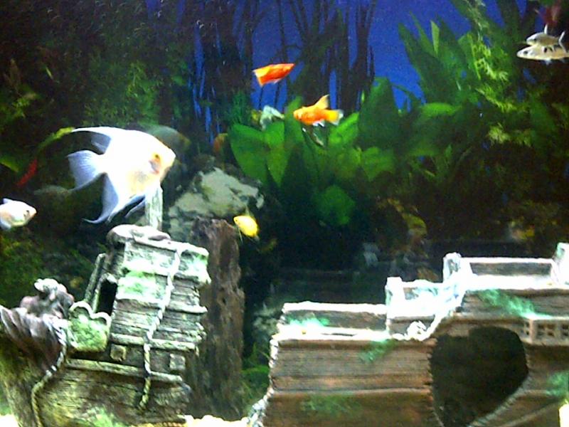 στο ενυδρειο μου χωρητικοτητας 170 καθαρων λιτρων (79χ42χ52 υψος), υπαρχει η εξης ψαροσυνθεση : - 1 πλεκο περιπου 13 cm - 1 sae περιπου 10 cm - 2 platy - 2 honey gourami μικρα - 2 silver shark - 1 σκαλαρι περιπου 13 cm ( ειχα 2 και χαρισα το ενα) - 1 μελατοταινια μικρη τα ψαρακια δεν τα αγορασα, αλλα ειναι ''προικα'' απο καποια ενυδρεια φιλων, που δυστυχως βαρεθηκαν και ηθελαν να τα ξεφορτωθουν (!) σας παραθετω σχετικη φωτο ( το διακοσμητικο καραβι, ειναι επιθυμια του παιδιου, οποτε εκει παμε ''πασο'' - οσοι εχουν παιδια, καταλαβαινουν τι εννοω- ) απο μετρησεις ειμαι οκ , με ph 7,8 - 8 αναμενω σχολια / παρατηρησεις σας με προοπτικη βελτιωσης σας ευχαριστω εκ των προτερων |