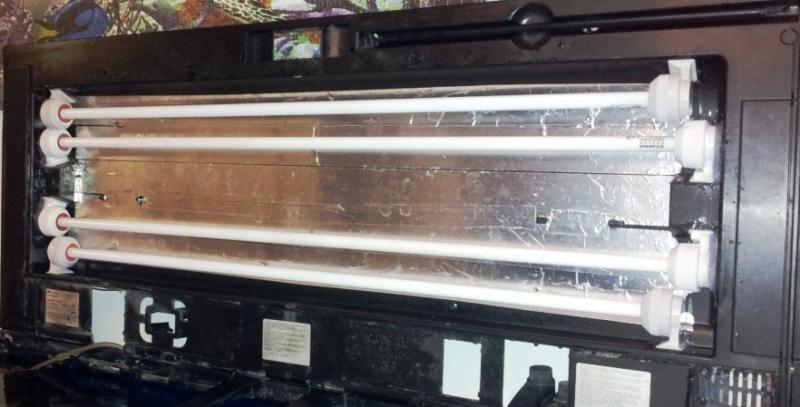Μετα απο πολυ διαβασμα εδω στο φορουμ κ ψαξιμο στο ιντερνετ καταφερα να αλλαξω τον φωτισμο στο ενυδρειο μου αφου το στηνω φυτεμενο κοινωνικο. Ξεκηνησα τπριν ενα μηνα κ ψαξε ψαξε εφτασα στο επιθυμητο αποτελεσμα. Να εχω ολες τις λαμπες μεσα στο καπακι μου κ να φενεται απεξω εργοστασιακο το ενυδρειο γιατι το εχουμε κ φατσα φορα στο σαλονι. Το ενυδρειο ειναι ενα cayman 110 pro στα 230λτ μικτα δλδ 200 καθαρα. Σκοπος να απαλλαχτω απο τις 2 Τ8 30w που ειχε απο το εργοστασιο κ να βαλω οσες πιο πολλες μπορουσα ωστε να εχω περιπου πανω απο 150w συνολο. Το διλημα? Τι να βαλω στις εργοστασιακες θεσεις που εχουν μηκος 85cm ωστε να εκμεταλευτω ολο τον διαθεσιμο χωρο στο καπακι. Η απαντηση ηρθε απο την sylvania με λαμπες T5 Grolux 45w στο μηκος των Τ8. Οπερ κ εγενετο παραγγελθηκανε κ φτασανε στα χερια μου. Σειρα ειχε το μπαλαστ οπου κ αγοραστηκε ενα 2Χ54 της Osram. Μετα πηραν σειρα τα στεγανα ακροφυσια. Βρεθηκαν σε ενυδρειακο μαγαζι στην Αθηνα οπου παραγγελθηκαν 4 ζευγαρια της GHL. K για να δεσει το γλυκο αγορασα κ 2 Τ5 39w cool daylight οπου τις αναβει το εργοστασιακο μπαλαστ των Τ8 που κανει για εως 2Χ38 οπως εγραφε επανω αλλα τελικα την παλεψε κ για τις Τ5. Τελος εμεινε το πρακτικο κοματι της αλλαγης. Ευτηχως που ειμαι υδραυλικος κ πιανουν τα χερια μου γιατι τελικα χρειαστηκε να επιστρατευσω ολη μου την μαστορια για να βγει το επιθυμητο αποτελεσμα. Καταρχην βγηκαν τα εργοστασιακα ακροφυσια Τ8 κ μπηκαν τα Τ5. Κουμπωσαν οι λαμπες των 45w κ τελος. Επειδη ομως δεν μου γεμιζε το ματι το πιασιμο τους εβαλα ενυδρειακη σιλικονη απο πισω κ στην βαση ωστε κ να κολησουν καλα. Στο 2ο σκελος οπου ηταν κ το πιο δυσκολο αφου μονταρισα τις λαμπες πανω στα ακροφυσια σημαδεψα στο πλαστικο καπακι που ακριβως θα "κατσουν" κ με ενα μαχαιρι που το ζεσταινα σε καμινετο εκανα τα κοψιματα σιγα σιγα κ με προσοχη. Στην συνεχεια εβαλα σιλικονη στην βαση τους οπου θα παταγαν τα ακροφυσια στο καπακι. 4 ωρες μετα κ αφου ειχε στεγνωσει η σιλικονη ηρθε η ωρα να το παιξω ηλεκτρολογος. Μην σας φενεται παραξενο για τον χρονο που εκανε η σιλικονη. Οντας ενυδρειακη στεγνωσε παρα πολυ γρηγορα. 1 ωρα μετα κ αφου ειχα ολοκληρωσει την ηλεκτολογικη συνδεση σε ολες τις λαμπες εκανα το 1ο τεστ αναματος για να εντοπισω τυχον προβληματα. Ολα πηγαν κατευχην κ αναψαν αμεσως. Σειρα πηρε το σουλουπωμα των καλωδιων γιατι μπορει να μην φενονται αλλα δεν μπορουσα να τα βλεπω κ αχταρμα. Εβαλα λιγη σιλικονη να τα κραταει στα σημεια που ηθελα. 1 ωρα μετα εκλεισα το καπακι κ το ξαναεβαλα στην θεση του. Το αποτελεσμα με δικαιωσε που ηθελα εξαρχης να τα εχω ολα σε 1 καπακι νοικοκυρεμενα. Στις φωτο παρακατω βλεπεται ολα τα υλικα που εβαλα οπως κ την εγκατασταση. Εχω κ 2 φωτο του ενυδρειου πριν με τις Τ8 κ μετα με τις Τ5. Σε μια φενονται μονο οι λαμπες αναμενες. Ειναι στην μεση οι grolux κ στις ακρες οι cool daylight. Μενει μονο ο ανακλαστηρας να μπει αλλα εχει παραγγελθει κ αυτος οποτε λιγο υπομονη. Οποιδηποτε σχολιο προς βελτιωση καλοδεχουμενο...