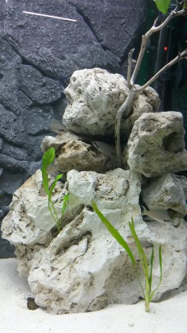 Επιτελους το εστησα το μικρο νταμαρακι μου σε ενα 100 λιτρο. Υποστρομα αραγωνιτη με ασβεστολιθικες πετρες Σαμοθρακης κελυφη απο βρωσιμα σαλιγκαρια και ξυλο απο το βουνο της Σαμοθρακης. Προσεχως θα φιλοξενιθουν 5 brichardi 5 ocellatus gold και 2 zebra snails. Το ενυδρειο τρεχει και με μπολι απο τον φιλο Savvas27. Απο φυτα οι επιλογες εγιναν ετσι ωστε να μην χρειαστει CO2 και ειναι τα παρακατω: vallisneria spiralis, anubias nana,mlcrosorum pteropus-windelov,