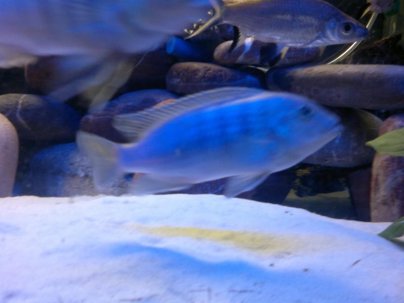 το πρωτο ειναι υβριδιο φουλ τα αλλα 3 ειναι Metriaclima greshakei το μπλε ειναι αρσενικο και τα δυο γκρι θυληκα .