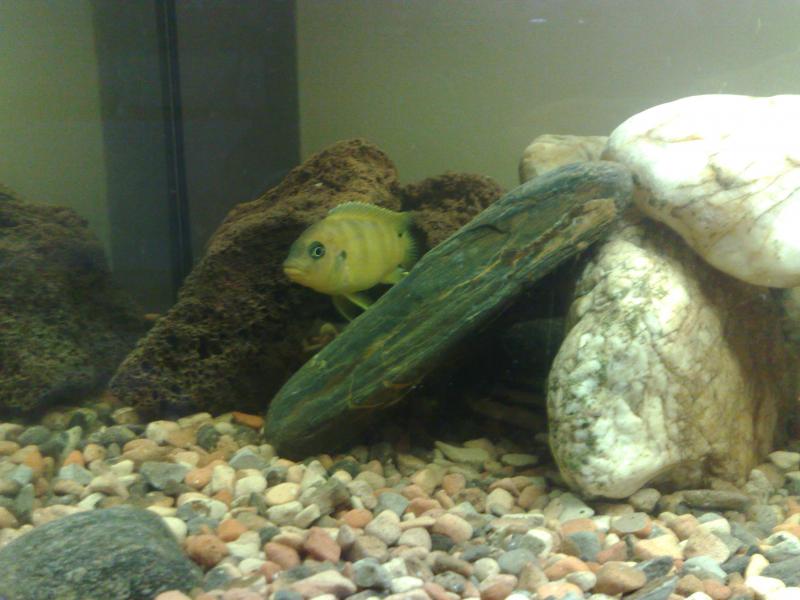 Αυτες οι κιχλιδες ειναι πετροψαρα τους αρεσει πολυ να κρυβονται σε σπυλιες!Πρεπει να κανουμε με πολλες σπιλιες με τις πετρες.Θελουν και ψιλη αμμο γιατι τους αρεσει να σκαβουν.Παρατηρησα οτι το νερο εχει σκουρο χρωμα αυτο μπορει να προερχεται και απο το ξυλο που εχεις μεσα.Καλο ειναι να το βγαλεις γιατι σου μαλακωνει το νερο.Καλο ειναι να εχεις το νερο γεματο μεχρι πανω στο πλαστικο.Στρεσαρονται γιατι ειναι σε πολυ λιγο χωρο πολλα ψαρακια και με πολυ λιγες σπυλιες.Το φιλτρο σου ειναι και αυτο παρα πολυ μικρο και εκτος οτι δεν εχει μεγαλη ροη δεν εχει και χωρο για βιολογικο υλικο.Μπορεις να δεις στην κατηγορια malawi καποια ενυδρια φιλων να παρεις μια ιδεα.