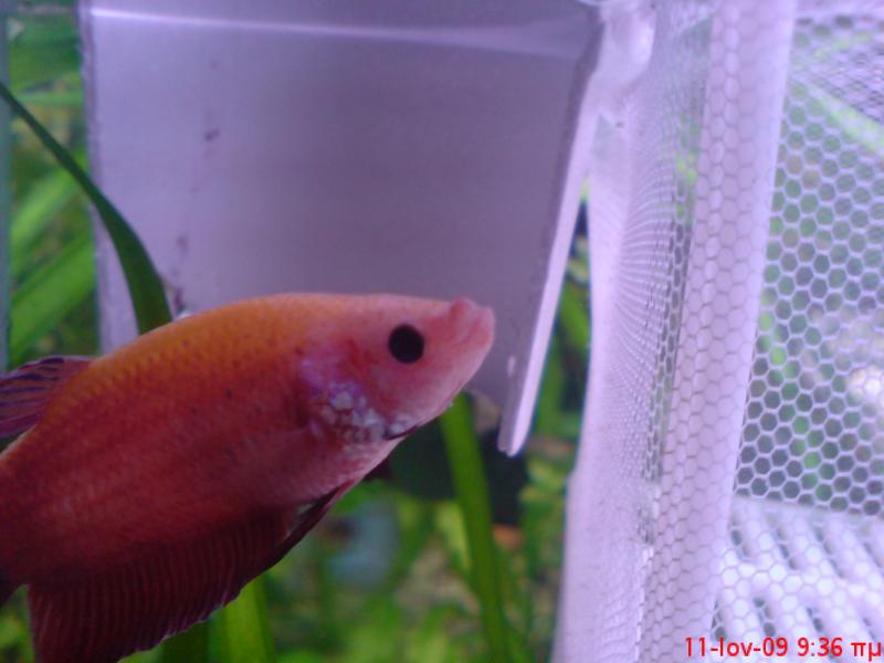 σημερα παρατιρισα στον ενα μου μονομαχο ο οποιοσ ειναι κιτρινοποσ κατι κοκινα στιγματακια στο στομα του στα χιλια και λιγο ποιο μεσα μιαζει με μικρεσ πληγεσ κοκκινες να τον βαλω μονο του ? τον εχω σε κοινονικο εχετε ακουσει κατι εχετε δει κατι παρομιο ???????? λετε να τον βαγκοσε καποιο απο τα αλλα μου ψαρια πχ ο κλοουν ?? κλοουν νεον ροδοστομοι και καποια γκαποι που θα φυγουν σιντομα