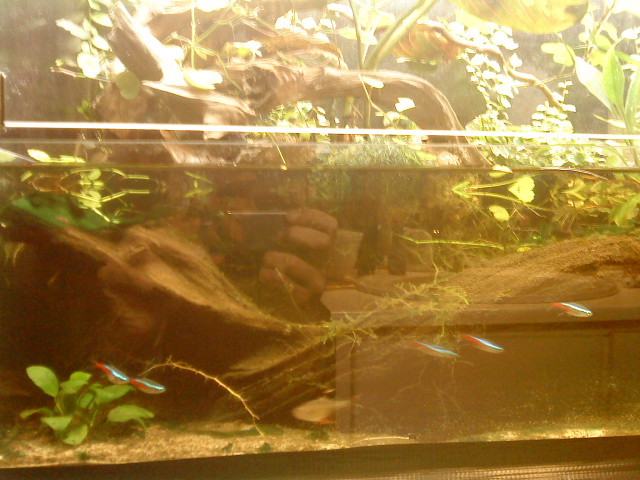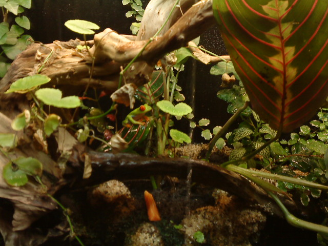 Πολύ καιρό είχα να ποστάρω κάτι και έτσι αποφάσισα να σας παρουσιάσω το καινούριο μου paludarium. Μετά την κατασκευή του πρώτου (που χάρισα στον Κώστα-Steady) αποφάσισα (όπως γίνεται συνήθως) για μεγαλύτερο αν και τώρα μου φαίνεται και αυτό πολύ μικρό... Αυτή τη φορά όμως εκτός από τα ψάρια φιλοξενεί και ένα ζευγάρι red eye tree frogs ΥΓ Κώστα περιμένω να δω και το δικό σου!!! Πληροφορίες Διαστάσεις:80x40x20 Όγκος:64 lt Κατηγορία Φυτά:anubia nana, java και στη επιφάνεια κισσοί και άλλα που δε γνωρίζω Ψάρια / ¶λλα είδη:1 ancistrus, 7 neon, 2 white tip tetra, 3 red shrimps, 2 red eye tree frogs Διακοσμητικά υλικά:άμμος, ξύλα (χαλίκι, ξύλα κ.λ.π.) Φόντο: Φωτισμός: 2 x 35 watt Διάρκεια φωτισμού: 10 ώρες Φιλτράρισμα: Tetra 400k Θερμοστάτης:ναι Λίπανση: Παροχή CO2: Παράμετροι: pH:7.5 Γενική σκληρότητα (GH):8 Ανθρακική σκληρότητα (ΚΗ):4 Αμμωνία (ΝΗ3):0 Νιτρώδη (ΝΟ2):0 Νιτρικά (ΝΟ3):0.5 Αλλαγές νερού:1 φορά εβδομαδιαίως Θερμοκρασία:25 C ¶λλες πληροφορίες:εγκαταστάθηκε τον Νοέμβριο του 2008 |
