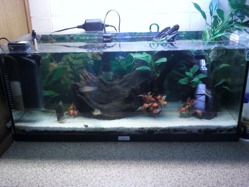 Κάτοικοι ένα ζευγάρι ramirezi cacatuoides,ένα SAE και τέσσερα cory..επίσης και δύο σαλιγκάρια δολοφόνοι..καθώς και μπόλικα φυτά που ίσως γίνουν περισσότερα στο μέλλον..