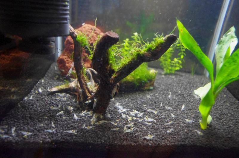 θερμοκρασια στους 25 σταθερα, το ενυδρειο τρεχει περιπου 8 μηνες, εχω 2 φιλτρα (1 eheim eco pro 130 και ενα eheim biopower 160 με τον οξυγωνοτη στην εξοδο του). Tροφες dennerle crustagran,sera shrimps natural, tropical shrimp sticks εναλαξ και ταιζω 1 φορα την εβδομαδα tropical spirulina granulat.