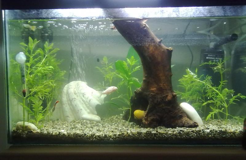 Διαστάσεις:60χ35χ30 Όγκος:60 λιτρα Κατηγορία: Φυτά:1 Αννουμπια και 11 Hygrophilla Diformis Ψάρια / ¶λλα είδη:6 Guppy 1 αρσενικο και 5 θηλυκα και ενα Corydoras aeneus Διακοσμητικά υλικά:ριζα που βρηκα στη φυση και υποστρωμα της sera και χαλικη Φωτισμός: philips tl-d 15w 840 master Διάρκεια φωτισμού:9 ωρες Φιλτράρισμα:HAILEA 200-400 l/h Θερμοστάτης:75watt Λίπανση:Terra PlantaMin Παροχή CO2: DIY 1φυσαλιδα τα 2δεφτερολεπτα Παράμετροι: pH:7,6 Γενική σκληρότητα (GH):16 Ανθρακική σκληρότητα (ΚΗ):10 Αμμωνία (ΝΗ3):0 Νιτρώδη (ΝΟ2):1 Νιτρικά (ΝΟ3):25 Αλλαγές νερού:30% καθε εβδομαδα Θερμοκρασία:26 ¶λλες πληροφορίες: Φωτογραφία: |