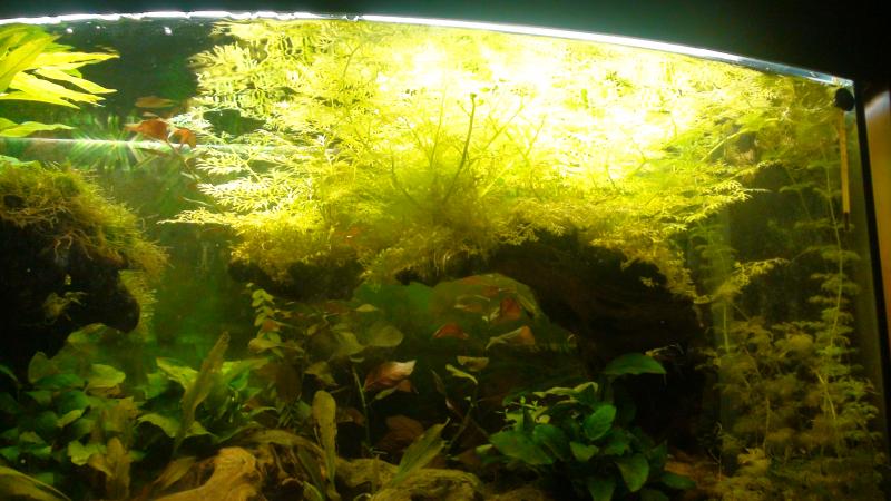 Διαστάσεις: 92*41*55 Όγκος: 180lt (καθαρά περίπου 150lt) Κατηγορία: Ν. Αμερική Φυτά: ANUBIAS BARTERI NANA, CABOMBA CAROLILIANA, LIMNOPHILA AQUATICA,Myriophillum Aquatica Green, Echinodorus 'Kleiner Bar', Hygrophila Carymbosa 'Siamensis', Echinodorus Quadricostatus , Ceratopteris Thalictroides, Bacopa Caroliniana Ψάρια / ¶λλα είδη: 35 cardinal tetra, 7 corydoras sterbai, 4 german blue ram (2 ζευγάρια), 5 apple snail Διακοσμητικά υλικά: 5kg DENNERLE DEPONIT MIX CLASSIC 2.5kg DENNERLE DEPONIT PROFESSIONAL 25kg χαλαζιακή άμμος(0.7-1.2mm) 3 ρίζες mopani + 1 ξύλο Φόντο: Αφίσα Φωτισμός: 2χ25w juwel Διάρκεια φωτισμού: 8 Ωρες Φιλτράρισμα: ΕΞΩΤΕΡΙΚΟ ΦΙΛΤΡΟ EHEIM PROFESSIONEL 2327 DRY/WET THERMOSTAT που περιέχει στό πάνω μέρος 2kg EHEIM SUBSTRAT και στο κάτω 2kg EHEIM MECH. ΕΣΩΤΕΡΙΚΟ ΦΙΛΤΡΟ Στον πάτο juwel filter spong fine, στη μέση 270gr sera siporax mini,στο πάνω μέρος juwel nitrax Θερμοστάτης: Αυτός που έχει μέσα το eheim Λίπανση: DENNERLE V30 Παροχή CO2: Οχι Παράμετροι: pH: ~7,2 Γενική σκληρότητα (GH): 5 Ανθρακική σκληρότητα (ΚΗ): 3 Αμμωνία (ΝΗ3): 0 Νιτρώδη (ΝΟ2): 0 Νιτρικά (ΝΟ3): 10 Αλλαγές νερού: 30% κάθε 2 εβδομάδες (Με χρήση α.ο 60% όσμωση 40% βρύσης) Θερμοκρασία: 25 ¶λλες πληροφορίες: Είναι σε εξέλιξη κατασκευή καινούργιου καπακίου με 3 λάμπες των 35w καθώς και συγκέντρωση υλικών για εγκατάσταση co2. Επίσης το ενυδρείο ξεκίνησε στις 29/01/12 όπως φαίνεται και απο αυτό το λίνκ http://www.aquatek.gr/vb/showthread.php?t=59764 και κατέληξε μετά απο πολλές ερωτήσεις, αποριές, βοήθειες, συμβουλές στην σημερινή του μορφή. Θέλω να ευχαριστήσω όσους με βοήθησαν και να είστε σίγουροι ότι οι ερωτήσεις μου δεν θα σταματήσουν. Φωτογραφία: