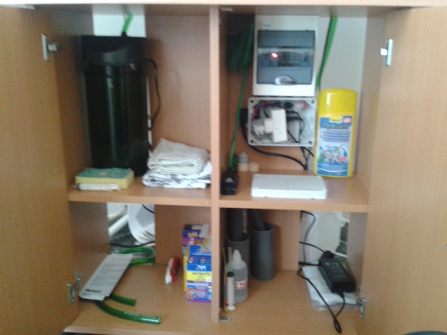 Το μικρόβιο το είχω εδώ και πολλά χρόνια. Οσπου μια μέρα βρήκα στα σκουπίδια τρία κομμάτια γυαλί τριπλεξ και εκεί αρχισε το σχέδιο. Έστειλα για κοπή τα τζάμια . Κόλλησα την γυάλα. Πήρα το έπιπλο. Πήρα και τα παρελκόμενα. Έκανα και ένα τεστ στατικότητας στην γυάλα Και μετά από το άδειασμα το τοποθέτησα στο σαλόνι μου. (Συνοπτικά) Πληροφορίες Διαστάσεις: 70 × 40 × 50 cm Όγκος:140 Κατηγορία: Φυτά: Vallisneria spiralis και θα βαλω και ανουμπια Ψάρια / Άλλα είδη: σκοπεύω να βαλω κιχλίδες Διακοσμητικά υλικά: βότσαλο βασάλτης και χαλαζιακή άμμος μπεζ ( 01 - 04 mm κοκκομετρία ) (χαλίκι, ξύλα κ.λ.π.) Φόντο: μπλε αυτοκόλλητο Φωτισμός: αυτοσχέδιος led Διάρκεια φωτισμού: προσωρινά 7 ώρες Φιλτράρισμα: ehaim 2213 Θερμοστάτης: ehaim 200 w Λίπανση: - Παροχή CO2:- Παράμετροι: pH: 7,2 ( πρέπει να ανέβει ) Γενική σκληρότητα (GH): 16 Ανθρακική σκληρότητα (ΚΗ): 10 Αμμωνία (ΝΗ3): 0,5 Νιτρώδη (ΝΟ2): 0 Νιτρικά (ΝΟ3): 10 Αλλαγές νερού: συμπληρώνω όσο εξατμίζεται μετην αναλογη προσθήκη αντιχλωριο Θερμοκρασία: 25 c Άλλες πληροφορίες: είμαι στην διαδικασία στρωσίματος με αμμωνία Φωτογραφία: |