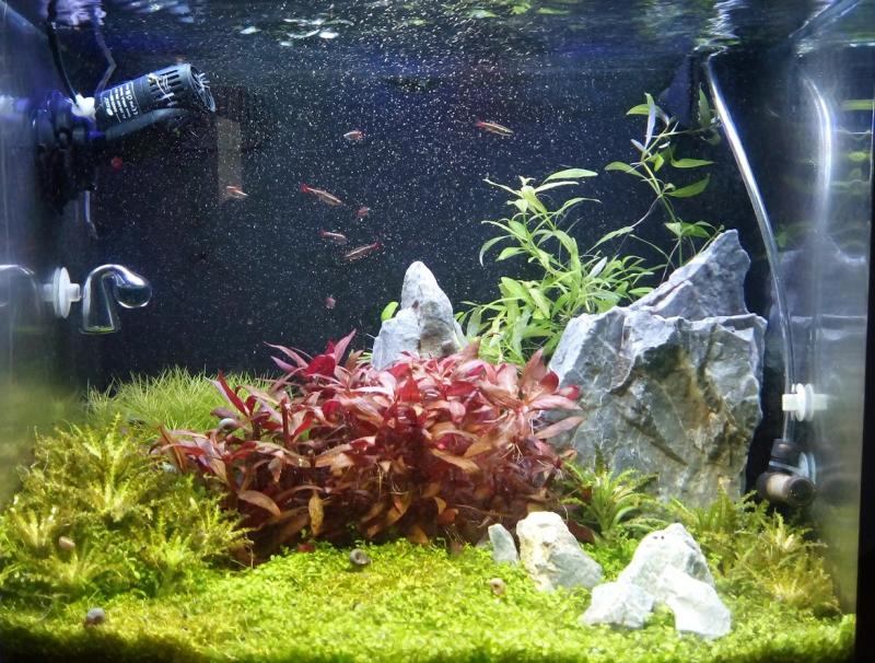 Περιμένω τα καινούρια λεντ για να διπλασιασω τον φωτισμό. Η Ludwigia Repens rubin παραμένει πρασινη αλλά η palustris μάλλον παίρνει λίγο πιο κόκκινο χρώμα. Το χαλί εξακολουθεί να είναι σαν πατσαβούρα. Το χω παρατήσει να σου πω. Δε θα κάτσω να σκάσω κι ολας. Στην τελική το διαλύω.