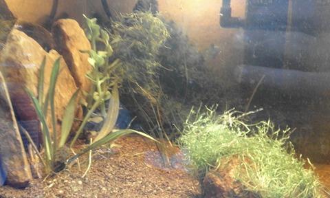 Μετά απο ενα ταξίδι σε δυο λίμνες τις πελλοπονήσου και γοητευμένος απο την βλάστησή τους είπα να πάρω μερικά φυτά (πολύ λίγα σε αριθμό όπως θα δείτε για να μην έχει το παραμικρό αντίκτυπο στο οικοσύστημα της εκαστοτε περιοχής) των οποίων δεν γνωρίζω το είδος.Σε αυτό το σημείο θα ήθελα να παρακαλέσω όποιον συνχομπίστα γνωρίζει πληροφορίες να με ενημερώσει. Μετα την επιστροφή μου στην αθήνα έμαθα οτι η μια εκ των δύο λιμνών η λιμνην Μουστού στο άστρος έχει υφάλμυρο νερό αλλα παρ' όλα αυτά είπα να πάρω το ρίσκο και να βάλω τα φυτά σε γλυκό. Τα φυτά υφάλμυρου είνα εκέινο που μοιάζει με moss στα δεξιά και τα μικρά "φίκια" στο κέντρο και μπροστά . Τα αλλα δύο είδη προέρχονται απο την λίμνη Τάκα στο οροπέδιο της Τεγέας και είναι το ένα πίσω και αριστερά ενω το άλλο είδος είναι στο κέντρο και πίσω τα τρία όμοια. Η πέτρες στο πίσω μέρος του ενυδρείου είναι μαζεμένες απο τον κήπο μου. (ενοείται πλυμένες και βρασμένες) Παραθέτω είκονες και περιμένω σχόλια και συμβουλές !!!