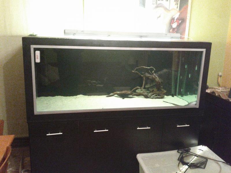 Τα ψάρια που θα φιλοξενήσει είναι 4 μικρά cichla ocellaris και 2 cichla piquiti , 1 hoplias malabaricus (wolf fish) και ένα σαλάχι potamotrygon motoro 12 εκ. τα οποία τα έχω ήδη σε άλλα 2 ενυδρεία και θα αρχίσουν να μπαίνουν σιγά σιγά στο καινούριο.