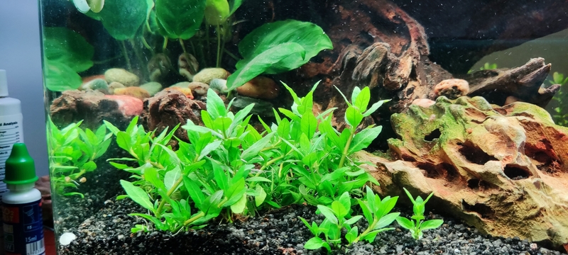 λόγω κατάστασης δεν κατάφερα να φτιάξω ακόμα το ενυδρείο στα 180lt που ήθελα, αντ' αυτού όμως άλλαξα γυάλα και πήγα σε παρόμοιες διαστάσεις με αυτό που είχα, αυξηθήκαν λίγο τα λίτρα και έβαλα το eheim 2217 σε λειτουργία αντί του 2215. Συγκεκριμένα το ενυδρείο έχει διαστάσεις 50x39x36 και μικτά είναι 70lt, καθαρά δεν έχω μετρήσει ακόμα πόσο είναι μιας και είμαι στις πρώτες μέρες που τρέχει με βιολογικό υλικό από το παλιό φίλτρο. Για φωτισμό έχω τοποθετήσει ένα Chihiros wrgb 2 49w, η φωτοπερίοδος μαζί με ανατολή και δύση είναι στις 10 ώρες, αλλά full μόνο τις 8. Επιπρόσθετα εισάγω co2, γενικό λίπασμα και trace της seachem, για υπόστρωμα έβαλα Dennerle Deponit Mix Black 10in1. Σαν έξτρα να αναφέρω lily pipe και κάποιες ώρες ανοίγω την Sicce Nano Voyager 2000 Lt . Έχω φτιάξει σχετικά "πρόχειρα" το aquascape και διαφορετικά από ότι είχα αρχικά στο μυαλό μου γιατί δεν βουλιάζανε τα ξύλα. Τα φυτά τα έχω βάλει 7 μέρες πριν από την φωτό, monte carlo μπροστά για χαλί και πάνω στην αριστερή πέτρα που κρατάει τη ρίζα κάτω, Rotala indica Bonsai στο πλάι δεξιά και πίσω σαν background, Eriocaulon cinerum δεξιά μπροστά, Staurogyne repens αριστερά μπροστά και από πίσω anubia, Riccia fluitans δεμένη με τούλι σε πέτρα πίσω αριστερά δίπλα από μία ριζούλα monte carlo, αλλά και στην πέτρα πάνω δεξιά που κρατάει την ρίζα κάτω. Μπορείτε να δείτε και τις φωτό! Ακόμα είμαι σε σημείο όπου παρατηρώ πως πάνε τα πράγματα και κάποιες από τις παρατηρήσεις μου είναι ότι, το νερό σιγά σιγά δεν είναι τόσο κίτρινο εξαιτίας των τανινών από τις ρίζες. Το c02 φαίνεται να είναι οκ στις 140 φυσαλίδες το λεπτό, σύμφωνα με το drop checker είναι πράσινο προς κίτρινο, τα ψαράκια δεν αναζητούν οξυγόνο, καθώς και τα φυτά δεν φαίνεται να λιώνουν τα φύλα τους, γενικά αρχίζουν βγάζουν νέες ρίζες και μεγαλώνουν. Όμως το χαλάκι αναζητά το φως και σηκώνετε προς τα πάνω, σε σύγκριση με αυτό που είναι στην πέτρα φαίνεται ότι είναι πιο πίσω στην ανάπτυξη. Το πρώτο ξύλο που έβγαλε χνούδι ήταν αυτό που είχα μέσα στο προηγούμενο ενυδρείο. Οι σωλήνες εισαγωγής εξαγωγής (lily pipes) νομίζω στην κυκλοφορία του νερού δεν είναι το ίδιο αποτελεσματικές όπως οι κλασικές της eheim, φαντάζομαι λόγω της εξόδου που δεν βγαίνει με την ίδια ένταση σε ευθεία ροή αλλά περισσότερο σαν στροβιλισμός, ακόμα δεν έχω κατασταλάξει σε πια θέση θα τις αφήσω. Από εκεί και πέρα, να πω ότι το φωτιστικό το είχα στο κέντρο τις γυάλας για να πιάνει πιο πίσω την Rotala και μερικούς πόντους πιο ψηλά για να έχει λίγο παραπάνω απόσταση από τα φυτά στις πέτρες, αλλά σήμερα το κατέβασα λίγο πιο κάτω και το τράβηξα πιο μπροστά για να δω πως θα πάνε τα πράγματα με το χαλί. Εξ αρχής ήμουν μεταξύ του να πάρω το chihiros ή δύο πιο φθηνά φωτιστικά για να έχω καλύτερη διάχυση, λόγω του ότι το aquascape είναι λίγο περίεργο, ακόμα το σκέφτομαι για ένα έστω πολύ μικρό για να καλύπτει ίσα ίσα πίσω, από την άλλη το ενυδρείο από πάνω το έχω ανοιχτό και θα ήθελα να του βάλω το γυάλινο καπάκι, που σημαίνει ότι θα κόψει και άλλο από το φωτισμό. Το φωτιστικό σαν απόσταση από το βυθό είναι στους 35 πόντους και αν το κατεβάσω τέρμα κάτω μπορεί η απόσταση βυθού - φωτιστικού να φτάσει τους 32 πόντους αλλά θα χάσω ακόμα περισσότερο στην διάχυση στο πίσω μέρος. Αν πήγαινα σε ένα δεύτερο chihiros είναι κάτι που δεν αξίζει λόγω χρημάτων? Επίσης το πολύ πολύ στο πίσω μέρος αν δεν είναι οκ η rotala με το φως μπορώ να βάλω κάποιο φυτό με πολύ μικρές απαιτήσεις σε φως. Βέβαια την συγκεκριμένη στιγμή σκέφτομαι ότι μήπως δεν με καλύπτει όσο νόμιζα 