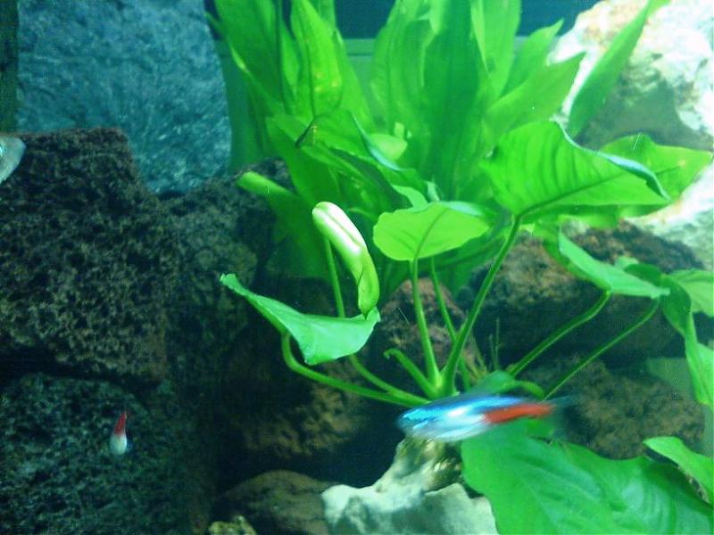 Διαστάσεις: 65x40x45. Όγκος: 120lt (~100 καθαρά). Κατηγορία: Κοινωνικό. Φυτά: Anubias barteri var. nana, Anubias barteri var. barteri και άλλα που δεν ξέρω όνομα και έχω σκοπό να βάλλω κι άλλα. Ψάρια / ¶λλα είδη: 12χ Paracheirodon inessi. 2χ Melanotaenia praecox, 5x Puntius titteya Corydoras panda Διακοσμητικά υλικά: Πέτρες λάβας, άλλες πέτρες, λευκή άμμος κτλ. Φόντο: τίποτα για την ώρα, έχω σκοπό να βάλλω μαύρο χαρτόνι Φωτισμός: 2x 15watt Arcadia flourocent και 7watt μια μικρή λάμπα της Aτμαν Διάρκεια φωτισμού: 13 ώρες Φιλτράρισμα: Eheim 2213 me ehfi synth και substrat pro Θερμοστάτης: 100watt Λίπανση: για την ώρα μόνο seachem flourish Παροχή CO2: όχι ακόμα Παράμετροι: pH: με μετρίσεις stick 6,5 Γενική σκληρότητα (GH): με μετρίσεις stick 12 Ανθρακική σκληρότητα (ΚΗ): με μετρίσεις stick 10 Αμμωνία (ΝΗ3): 0 Νιτρώδη (ΝΟ2): ~5 Νιτρικά (ΝΟ3): ~5 Αλλαγές νερού: κάθε βδομάδα το 30% από εδώ και πέρα Θερμοκρασία: 24C Κάθε σχόλιο δεχτό.... ελπίζω να έχετε πολλά..... Τελευταία επεξεργασία από το χρήστη violinist : 02-04-07 στις 00:04 |