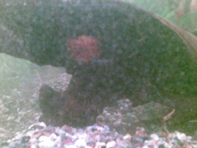 Σημερα και ενω αποφασισα να κανω καποιες αλλαγες στο λουκ του ενυδρειου μου και καθως σηκωσα μια ριζα μοπανι με σκοπο να την αλλαξω θεση,ειδα ενα "τσαμπι" να το πω? απο κιτρινα αυγα κολλημενα κατω απο τη ριζα.. Μαλιστα αρχικα δε τα ειχα δει και γελουσα με τον ancisrtus που παρεμενε πανω στο ξυλο κολλημενος και μαλιστα οσο εβγαζα το ξυλο πανω απο την επιφανεια αυτος τοσο προχωρουσε οσο να βρισκεται κατω απο την επιφανεια του νερου... Η φωτο δεν ειναι καθαρη αφου υπηρχε ενας γενικοτερος χαμος απο την ανακατωσουρα που ειχα δημιουργησει νωριτερα με τις μετακομισεις φυτων,κλαδεματα κ.λ.π