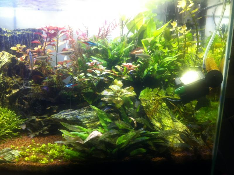 Διαστάσεις:80*40*45 Όγκος:130 Κατηγορία:φυτεμένο Φυτά:Bacopa caroliniana, cabomba caroliniana, rotala rotundifolia indica, cryptocoryne wendtii green, cryptocoryne wendtii brown, anubias barteri var. nana, anubias barteri petite, java fern, hygrophila corymbosa, Micranthemum umbrosum,pogostemon helferi, stayrogyne repens, hemiantus cuba Ψάρια / ¶λλα είδη:10 νέον τετρα, 8 blue Tera, 2 sae, 1 pleco albino Διακοσμητικά υλικά: γρανιτοπετρες, finger root, χαλίκι jbl manado (χαλίκι, ξύλα κ.λ.π.) Φόντο: αυτοκόλλητο αμμοβολής Φωτισμός:4x20watt led Διάρκεια φωτισμού:10 Φιλτράρισμα: tetratec ex700 Θερμοστάτης: juwel 200w Λίπανση: tetra complete substrate Παροχή CO2: flourish excel Παράμετροι: pH:7 Γενική σκληρότητα (GH):16 Ανθρακική σκληρότητα (ΚΗ):8 Αμμωνία (ΝΗ3):0 Νιτρώδη (ΝΟ2):0 Νιτρικά (ΝΟ3):10 Αλλαγές νερού:1 κάθε εβδομάδα Θερμοκρασία:25 ¶λλες πληροφορίες: Φωτογραφία: |