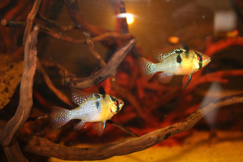 Σημερα το ενα ραμ ειχε κ μια "μαχη" με το puffer.Γενικα τα ραμς τρωνε τα σκουληκια αρκετα αργα.Το ραμ πηρε στο στομα του το σκουληκι αλλα περισσευε αρκετο εξω απο αυτο.Το puffer αδραξε την ευκαιρια κ το επιασε απο την αλλη μερια.Κ αρχισαν το ενα να το τραβαει απο την μια κ το αλλο απο την αλλη.
