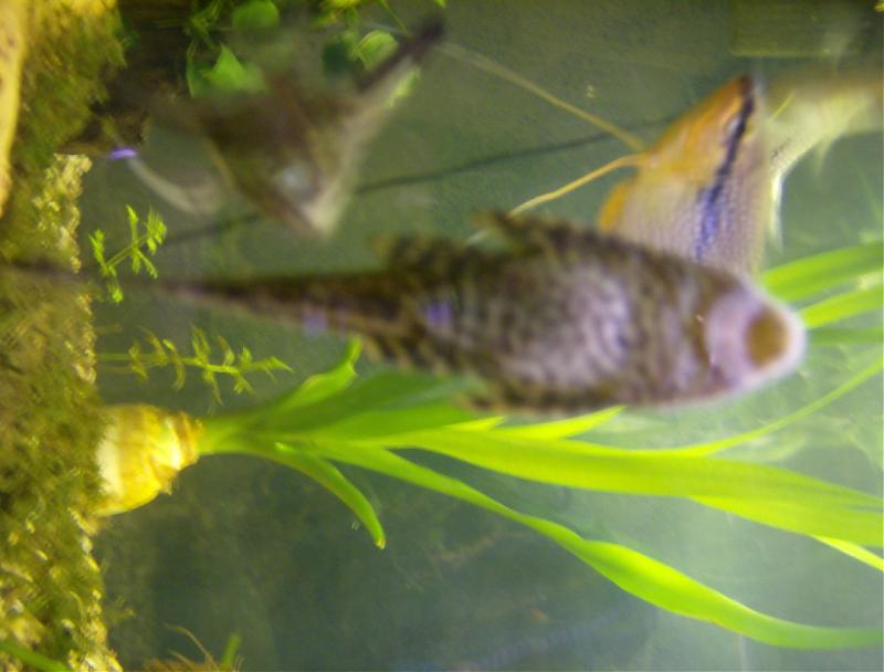 Αυτο ειναι το 2 μωρο μου!Το πρωτο μωρο μου αναγκαστηκα να το δωσω σε ενα συμαθητη μου σε ενα οσκαροενυδρειο 500λιτρα,λογο αυξημενης επιθετικοτητας(φευγαν λεπια απο αλλα ψαρια).Βεβαια τον βλεπω συχνα και δειχνει τελεια εκει και παιρνει την ιδια φροντιδα(αγγουρακια,πελετς βυθου,ριζες και κανενας αλλος bottom dewller!!).Τωρα παμε σε αυτον το μικρουλη.Τον πηρα τον φεβρουαριο σαν....γλυφτη!!Πετ σοπ της γειτονιας...δεν ηξερε επιστημονικο ονομα.Ηταν 7εκ και τωρα 9,5 σταθερα εδω και 2μηνες.
