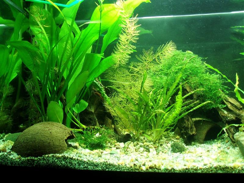 Πριν τρεις μέρες διάλεξαν μία από τις δύο καρύδες και το αρσενικό άρχισε να κλείνει την είσοδο ώστε στο τέλος ίσα που χωρούσαν να περάσουν μέσα. Χθες μπαινόβγαιναν στην καρύδα μια το ένα και μια το άλλο και μερικές φορές μαζί. Δυστυχώς δεν έχω photo από τα χθεσινά. Έχω μερικές από τα τσαλίμια τους μερικές μέρες πριν. Στο ενυδρείο έχει αντικατασταθεί η μία λάμπα με μία ροζ για φυτά της Arcadia. Επίσης η σύνθεση των ψαριών είναι πλέον 5 x Puntius titteya 5 x Trigonostigma heteromorpha 2 x Pelvicachromis pulcher