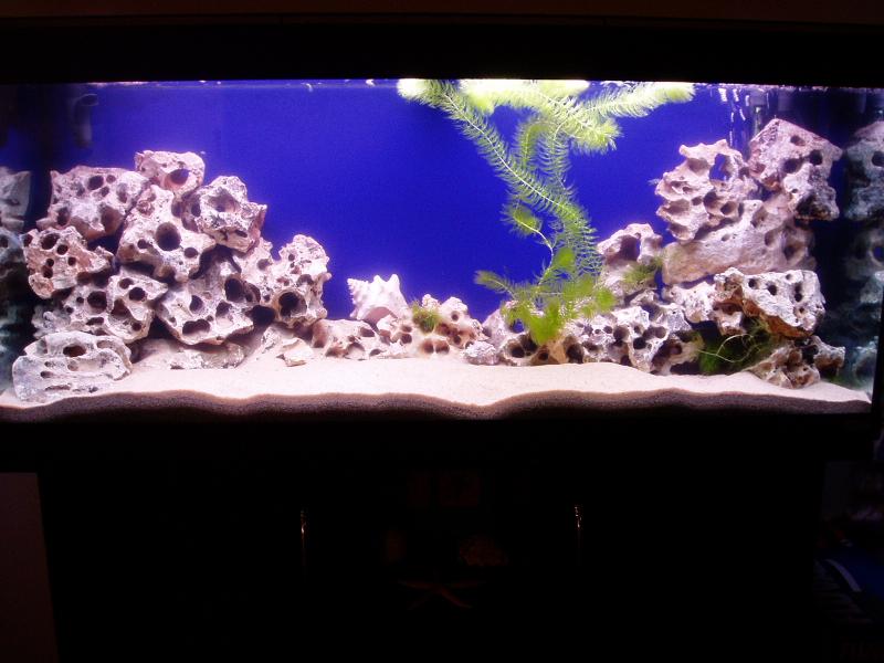 Στο νερό δεν έχω ρίξει τίποτα, εκτός από αντιχλώριο. Αύριο έχω κανονίσει να πάρω μπόλιασμα. Το ενυδρείο είναι 240 λίτρων. Εχω βάλει 30 κιλά άμμο από Παραλία και 40 κιλά πέτρες Moonstone, πολύ καλά πλυμένα και βρασμένα. Εχω βάλει σε λειτουργία το φίλτρο FLUVAL 305 με δύο λευκά σφουγγάρια και Biomax, Θερμοκρασία στους 26 C λάμπες Τ8 AQUA-GLO 40W και POWER-GLO 40W ανάβουν περίπου 8 ώρες. Το PH 8, GH 9, KH 7. Δεν ξέρω αν βοηθούν τα παραπάνω ή αν είναι περιττά λόγια. Δείτε και φώτο, αν και δεν φαίνεται καλά. |