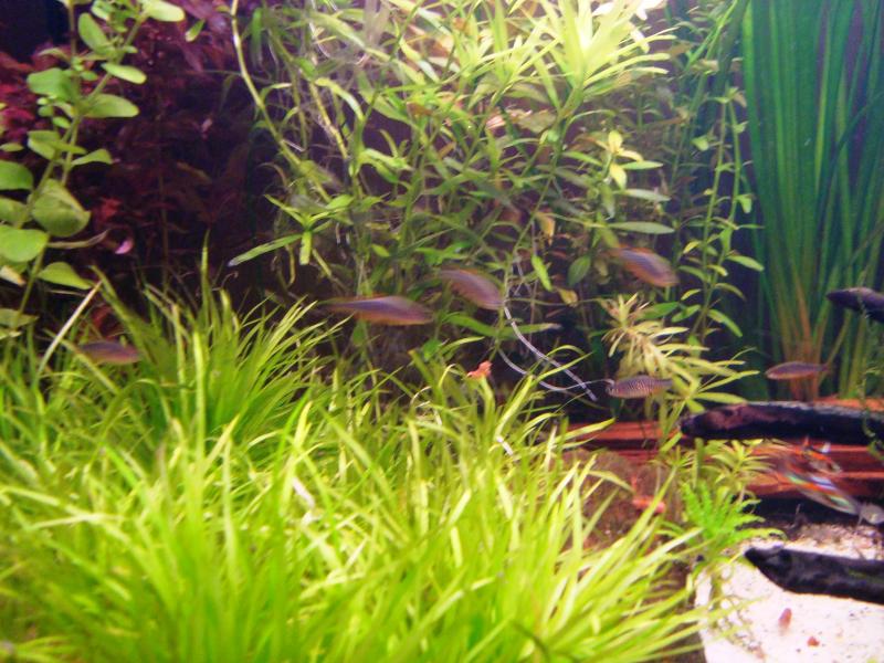 Φυτά: Microsorium pteropus, Valisneria nana, Ludwigia repens, Rotala rotundifolia, Micranthemum umbrosum, Blyxa japponica, Pogostemon helferi, Echinodorus tenellus, Java moss, Christmans moss, Glossostigma elatinoides, stargrass, Limnophila aquatica, Pelia (Monosolenium tenerum), Lysimachia nummularia, Proserpinaca palustris, Rotala macrandra, Wilow moss (Fontinalis antipyretica), Cabomba furcata, Hemianthus micranthemoides.