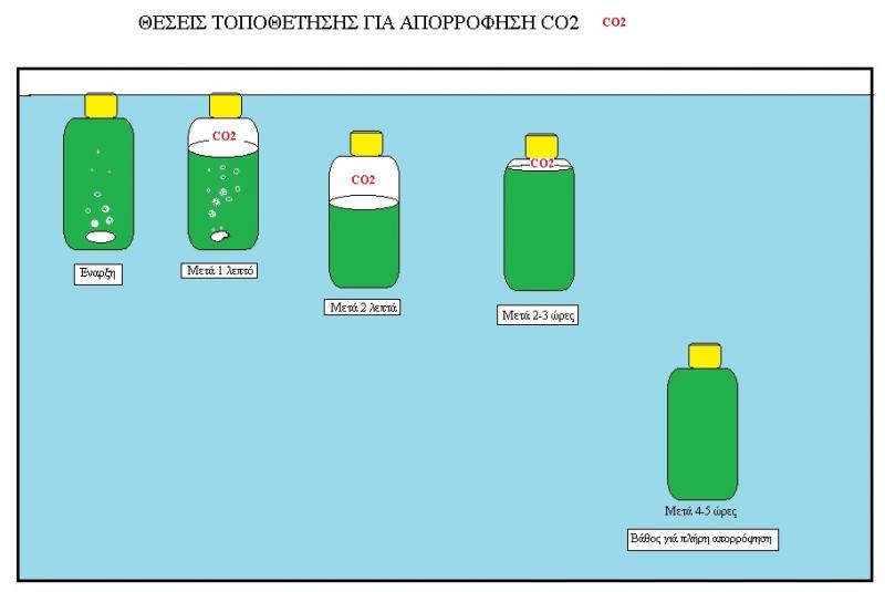 Το παραπανω μπορει να γεινει σαν διαχυτηρας!Ανοιγεις απο κατω απο το μπουκαλακι τις τρυπες και πανω στο καπακι ανοιγεις μια τρυπα με ενα καρφι και βαζεις το σωλινακι απο το ζαχαρονερο.Ετσι το μπουκαλι παλι θα γεμισει με διοξυδιο οπως και με τα χαπια αλλα πολυ περρισοτερο και θα εχεις την ιδια αποροφηση co2 (ισως και περισσοτερο)!Και για να γινει αυτο μπορεις να περασεις το σωλινακι μεσα απο το καπακι και στο τελος να βαλεις μια αεροπετρα κλεινεις το καπακι,βουλιαζεις το μπουκαλι στο επιθυμητο βαθος και θα βγαζει διοξυδιο για 1 μηνα περιπου!!