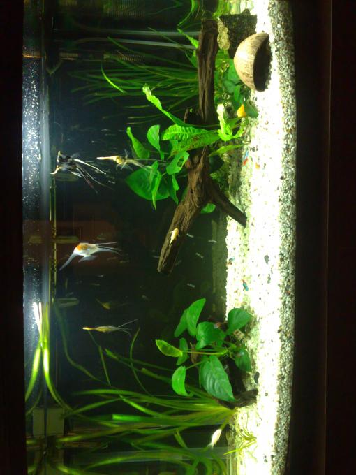 Ολα τα ψαρακια σου θελουν μαλακο νερακι με χαμηλες σκληροτητες και ph 6-6.5.Τα κορυ ζουν σε ομαδες τουλαχιστον 6 ατομων και χρειαζονται αμμο κ οχι αυτο το χοντρο πολυχρωμο χαλικι με κοματια λαβας(θα τραυματιστουν).Τα αγγελοψαρα χρειαζονται μεγαλυτερου υψους ενυδρειο αλλα και περισσοτερα λιτρα.Τελος πεσμας τι ειναι αυτο το αλγοφαγο αλπινο???Αυτα απο εμενα πρεπει να προσεξεις.Τωρα ειδα πως αλαξες το χαλικι αλλα και παλι δεν κανει για τα κορυ.