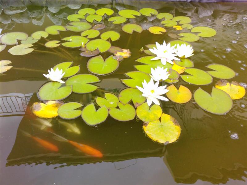 τα κοι εχουν μεγαλωσει αρκετα , και οσο φαι τους ριξω το εξαφανιζουν σε χρονο ττ , τρωνε και μερικα φιλαρακια απο τα νουφαρα , αλλα δεν πηραζει ειναι κουκλια. |