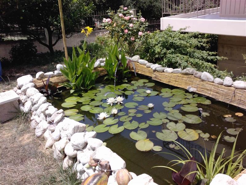 εχω φτιαξει στον κηπο μου μια λιμνη 3χ2 απο λαινερ απο περσι τον ιουνιο , εβγαλε τον χειμωνα χωρις απωλειες , εχει βαθος περιπου 1,10 εωσ 0.60 ειχα μεσα τεσσερα κοι και επτα χρυσοψρα , δυο νουφαρα που ξαναπεταξαν την ανοιξη και ειχαν μεγαλη αναπτυξη και κατι κατι αλλα φυτα ,τωρα η λιμνουλα μου εχει γεμισει μικρα ψαρακια τουλαχιστον θα ειναι καμια 40 που εχουν επιζησει και εχουν κανει και ωραια χρωματα. η λιμνουλα μου ειναι στο ριο πατρων . εχει ενα φιλτρο ετοιμο με μια αντλια 4000λ και μια αεραντλια , μεχρι τωρα η μετρησεις μου ειναι αμμωνια 0 και νιτρικα 0 νιτρικα δεν εχω δει ποτε πανω απο 0 μαλλον απο τα φυτα θα ειναι. ενα βιντεακι που εχω ανεβασει στο youtube http://www.youtube.com/watch?v=cEio4BUDyXU φωτο θα βαλω αλλη φορα γιατι θελου να τις μικρυνω για να ανεβουν . |