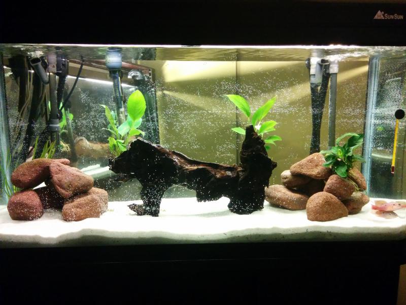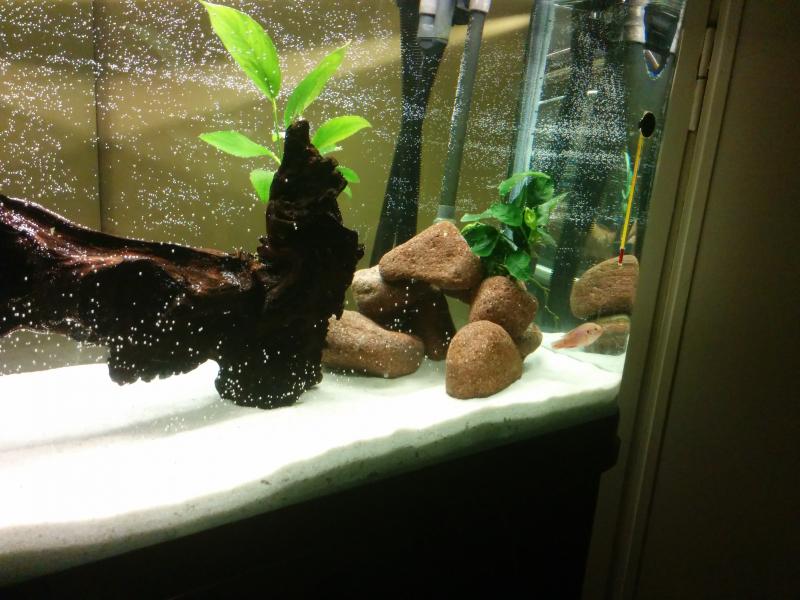 Διαστάσεις:100x35x50 Όγκος:180 lt καθαρά Κατηγορία:Αφρική Φυτά:3 ανουμπιες 1 βαλσεινειρα Ψάρια / ¶λλα είδη:4 hemichromis lifalili ( ώσπου να έχουμε το ζευγάρι) Διακοσμητικά υλικά ξηλο πέτρες άμμος Φόντο:τίποτα ακόμα Φωτισμός:1 τ5 21w Διάρκεια φωτισμού:8 ώρες Φιλτράρισμα:fluval 205 και fluval 306 φουλ βιολογικό Θερμοστάτης:για θέρμανση και ψύξη περιμένω stc-1000 για απόλυτο έλεγχο Λίπανση:seachem Παροχή CO2:- Παράμετροι: pH:7,2 Γενική σκληρότητα (GH):7 Ανθρακική σκληρότητα (ΚΗ):5 Αμμωνία (ΝΗ3):0 Νιτρώδη (ΝΟ2):0 Νιτρικά (ΝΟ3):5 Αλλαγές νερού:30% κάθε 7 ημέρες Θερμοκρασία:25 ¶λλες πληροφορίες χάρη αυτού του υπέροχου φόρουμ έμαθα τα πάντα για τα αγαπημένα μου ψάρια τίς Κιχλίδες μετά απο πόλη διάβασμα ψάξιμο και ξενύχτια κατάλαβα οτι ενα πράγμα με χαλαρώνει και με εμπνέει και ξεκινάω το χόμπι με αυτό ευχαριστώ παιδιά για τά ωραία θέματα Φωτογραφία |