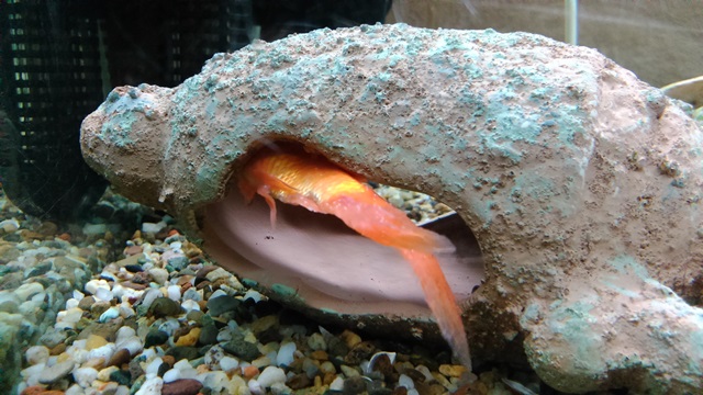 και φαινονται στην φωτογραφια που ειναι το χρυσοψαρο σε μια τρυπα