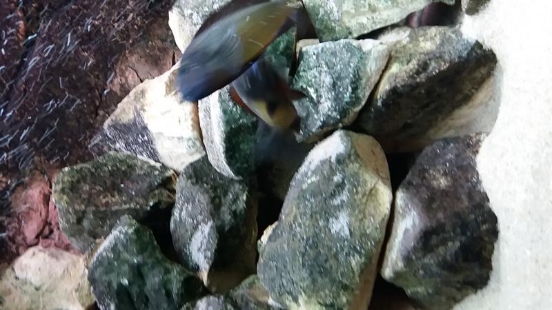 Άρχισαν πλέον να κινούνται και με σβηστά τα φώτα αλλά τρομάζουν εύκολα ακόμα.Σιγά σιγά άρχισαν οι αγάπες κι έρωτες, αγκαλίτσες φιλάκια αλλά και ναυμαχίες σώμα με σώμα εεεεε στόμα με στόμα ήθελα να πω.Οι αρσενικοί κυρίως έχουν μεταφέρει την άμμο από τις μεριές τους πάνω στις πέτρες.Ωραίες συμπεριφορές που μόνο από τα τροφέους μπορείς να τις δεις.Είχα και τα mbuna τόσο καιρό και πολλά είδη μάλιστα αλλά σαν τα τροφέους δεν υπάρχει.