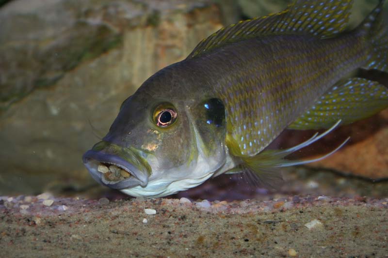 Κοινό όνομα: Limnochromis staneri Οικογένεια: Cichlidae Τελικό μέγεθος: Αρσενικά 19 cm και θηλυκα 14 cm Καταγωγή:Λίμνη Τανγκανίκα Ενυδρειο:minimum 200 lt Συνθήκες:PH : 8 - 9 GH 10 - 20 dGH Θερμοκρασια:24 - 26 C Διατροφή:Σαρκοφαγο. Διαχωρισμός φύλων:Μονομορφικο Αναπαραγωγή:Πολυγαμικο,στοματεπωάζων,διαρκεια εκκολαψης αυγων 14 μερες. Περιβαλλον:Λάσπωδης περιοχες,15-100 μετρα. Συμπεριφορά & συμβατότητα:Διαρκεια ζωης 8-10 χρόνια.Σπάνιο ψαρι και δεν υπαρχουν πολλες πληροφορίες για αυτό το είδος. |