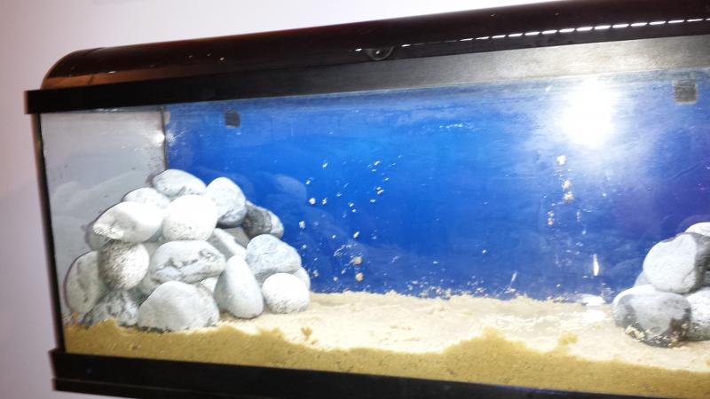 Βγάλε τις πέτρες, τράβα την άμμο δεξιά, στρώσε τις πέτρες και ρίξε την άμμο από πάνω να "δέσει το γλυκό". Βάζοντας μετά και το νερό η άμμος θα κλείσει κενά και θα σταθεροποιήσει την πολυκατοικία των πετρόψαρων. Δεν είναι δύσκολο |