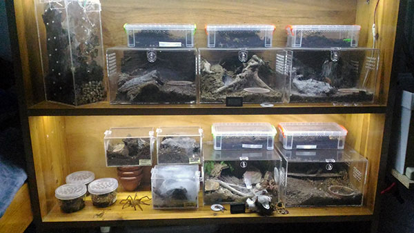Η μικρή μου emilia... Η αρσενική μου pterinochilus murinus, 4ων ετών, η οποία απεβίωσε σήμερα το απόγευμα από γηρατειά... Και μια γενική από μερικά σπιτάκια των ζωντανών μου... |