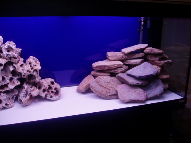 Όπως σου είπε και ο Thanasis76 παίξε λίγο με τις πέτρες δεξιά. Προσπάθησε να τις στήσεις πιο φυσικά. Κάνε δοκιμές και όπως σου κάτσει καλύτερα στο μάτι άστες.Μάλλον αυτό δεν σου κάθεται καλα. Κοίταξε να έχεις αρκετές κρυψώνες. Κατα τα άλλα με λίγο υπομονή και όχι βιαστικές κινήσεις θα το κάνεις τέλειο.Καλή συνέχεια λοιπόν απο μένα. Αλήθεια, τι ψαράκια σκέφτεσαι να βάλεις?