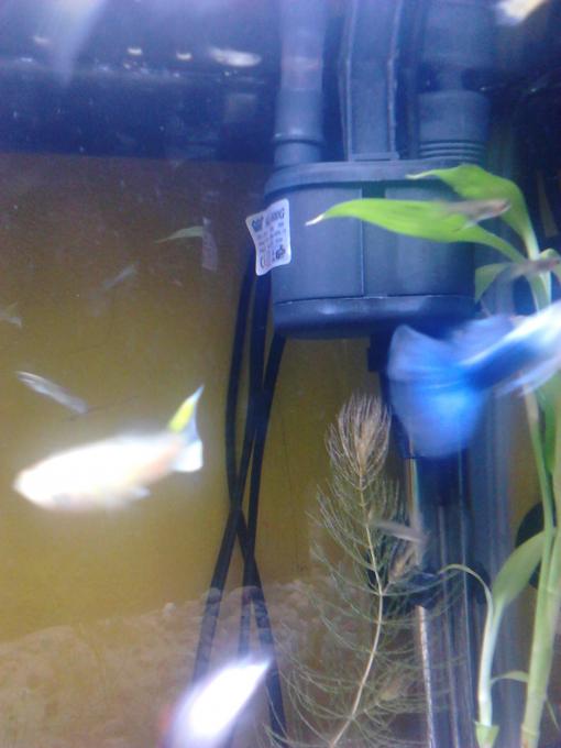 Οι ανουμπιες λογικα η αλγη τους οφειλεται στον δυνατο(1watt/λιτρο)φωτισμο και στην αμεση εκθεση τους σε αυτο.Προσπαθησε να τις βαλεις σε πιο σκιερο μερος.Τα 2 ψαρακια σου μαλλον εχουν fin rot.Διαβασε εδω