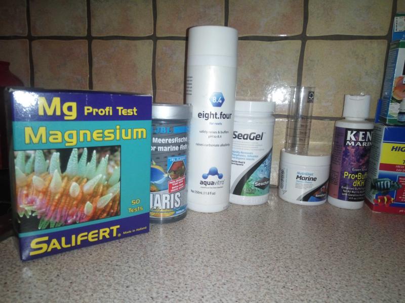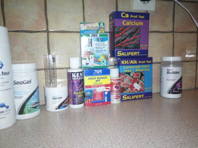 Ειμαι κατοχος 2 ενυδρειον 1 φυτεμενο με πλατυ γκαππυ 60 Lit και 1 * 120 με αφρικανες κιχλιδες. εδω και 2 ημερες βαλαμε σπιτι μας κυριως για τα παιδια μας και 1 θαλασσινο ενυδρειο 60 Lit το οποιο και αγορασα απο φιλο. Μαζι με αυτο το ενυδρειο πηρα απο τον φιλο και την βαση και μαζι αυτα τα προιοντα. ************************************************** *** JBL Ph test 3.0 – 10.0 mg profi test magnesium Ca profi test calcium salifert KH / AIk profitest Carbonate Hardness / Aalkalinity API High Range Ph test kit Seachem PRIME Reef Builder JBL FLAKES MARIS AQUAVITRO eight.four ph to 8.4 Reef Fusion 1 thwo part system maintains calcium & alalinity JBL MARIPEARLS NUTRIDIET MARINE FLAKES KENT MARINE Pro Buffer Dkh SeaGel removes phosphates silicates and organic waste Stability New Tank stabilization System Seachem Seachem PhosGuard remove phosphate and silicate Reef Zoo Plankton ************************************************** *** Το ενυδρειο εχει 3 σαλιγκαρια και 2 ψαρακια κλοουν + τα κοραλια. Εχει ενα φιλτρο που ειναι λιγο ανεβασμενο ωστε να κανει και κινηση νερου παραλληλα και επισης ενα σκιμερ... Λιγο πολυ μου ειπε τοπαιδι περι ταισματος και αλλαγη περιπου καθε 20ημερες. Θα χρειαστω εξτρα να παρω ενα ρεφρακτομετρο και επισης αλατι. Απο αυτα που εχω που μου εδωσε τι πρεπει να κανω το καθε ενα.... ειναι τοσα πολλα...που εχω χαθει. Η αληθεια ειναι οτι σε σχεση με τα 2 ενυδρεια που εχουμε γλυκου νερου, ειναι πραγματικα μαγεια το ενυδρειο το θαλασσινο. Εχουμε ενθουσιαστει ολοι μικροι μεγαλοι. Απλα λεμε τωρα τι!!!! απο που! πως κλπ.... και το εκανα ετσι να παρω ενα στρωμενο για να ειναι πιο ευκολη και απλη η μεταβαση...αλλα ειναι τοσα πολλα που δεν ξερω απο που να αρχισω και τι αλλο θα μπορουσα να προσθεσω μεσα στο ενυδριεο αυτο... Σας ευχαριστω για τον χρονο σας.... |