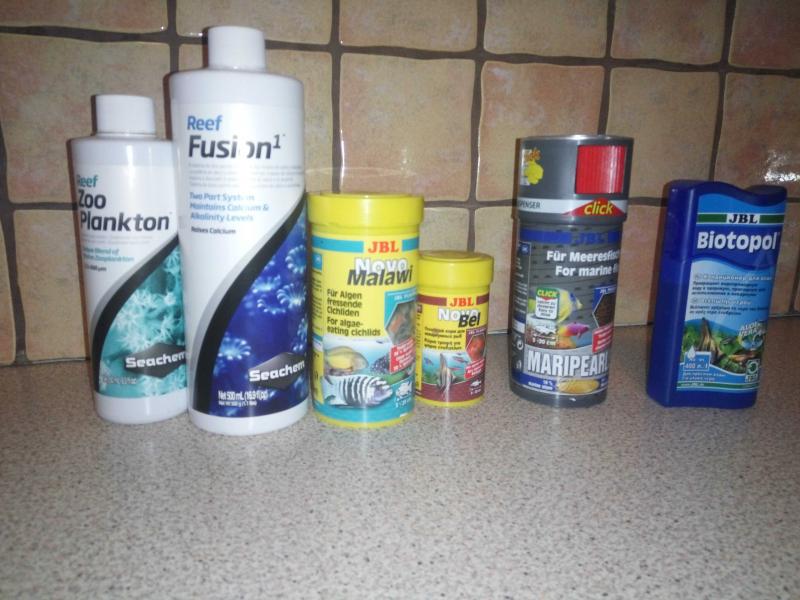 Ρεφρακτομετρο ΟΚ αλατι ΟΚ ποσα κιλα να παρω και πως θια φτιαξω αυριο νερο...υποθετω θα μου το πει το παλικαρι στο καταστημα... , ενα μικρο wave maker ΟΚ αν και σκεφτομουνα επαιρνα κανα 2-3 απο το ebay και για τα αλλα ενυδρεια και με σκεψη να μεταφερθει αργοτερα στο 120 λιτρα. και ενα μπουκαλάκι βακτήρια special blend οπως και ενα reef plus! *** εχω διαφορα μπουκαλια και τεστ και νομιζω οτι εχω και reef *** Κοιτα λιγο την φωτογραφια που επισυναπτω την καινουργια εαν κανει καποιο απο αυτα Οσο αφορα τα δοχεια εχω 1 20 λιτρα ανταλακτικη μπουκαλα νερου μπορω να βρω αλλο 1. Νομιζω ειμαστε ενταξει. Εγω τωρα με τρεχει αυριο να παω να παρω αλατι και τα υπολοιπα να φτιαξω το νερο....ειναι φρονιμο αυριο να παρω και 1 αστερια μαζι με 1 γαριδα η οχι....? Σημ.. Εννοειται πως ξερω ποιες ειναι οι τροφες!~!!! |