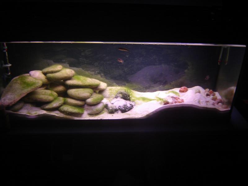 Ειμαστε σε βαθος 7 m και βλεπουμε μια αποψη του βυθου της λιμνης Malawi ...μμμ..λαθος, λαθος σε βαθος 70 cm και βλεπουμε μια αποψη του ενυδρειου μου, "The Malawi" τεως "The Black Malawi".