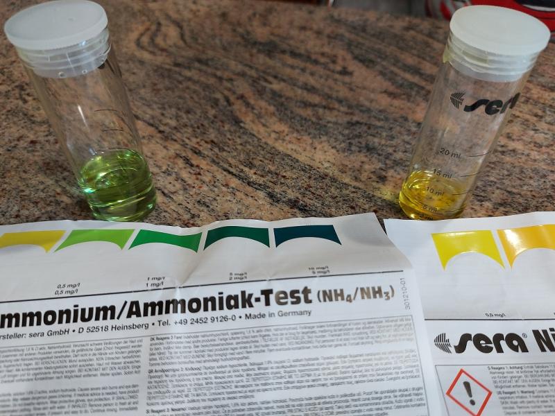 ![]() ![]() Λοιπόν ακολούθησα τις οδηγίες του σκευάσματος (τον μαγικό ζωμό που λέγαμε) αφού τον είχα αγοράσει ήδη και κατόπιν σιγουριάς του καταστήματος, οπότε το Σάββατο πήραμε δύο γκάπυ και τα βάλαμε μέσα με τον μαγικό ζωμό να μπάνει μετά από 2 ώρες κατόπιν οδηγιών. Εχτές έκανα μια αλλαγή νερού (10λτ νομίζω περίπου άλλαξα). Πήρα και υγρά τεστ και σήμερα το πρωί μέτρησα αμμωνία 0,5. Σας βάζω και τα υγρα τεστ που έκανα. Έριξα λοιπόν άλλα 5ml βακτήρια. Μπορώ να κάνω κάτι άλλο; Εάν προσθέτω επιπλέον βακτήρια ή επιπλέον αντιχλώριο (δηλαδή τα βακτήρια λένε 10μλ στα 40λτ που τα έβαλα την Κυριακή, εχτές έβαλα άλλα 2,5μλ στα 10λτ που άλλαξα και σήμερα έβαλα άλλα 5μλ έχτρα) δημιουργώ πρόβλημα ή καλό κάνω; Ευχαριστώ παιδιά..... μπορεί κατάστημα και η βιασύνη των παιδιών να με οδήγησαν σε λάθος τελικά. Είδομεν...