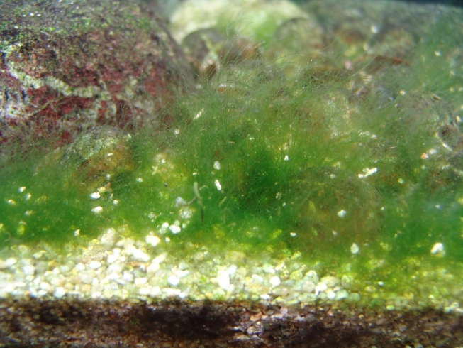 Όπως βλέπεται και στις Φώτο έχει γεμίσει το χαλίκι με πράσινη τριχοειδή άλγη. Η άλγη στα τζάμια έκανε την εμφάνιση της αλλά τώρα έχει αρχίσει να μειώνεται ενώ αυτή στα χαλίκια είναι εμφανώς σε αύξηση.
